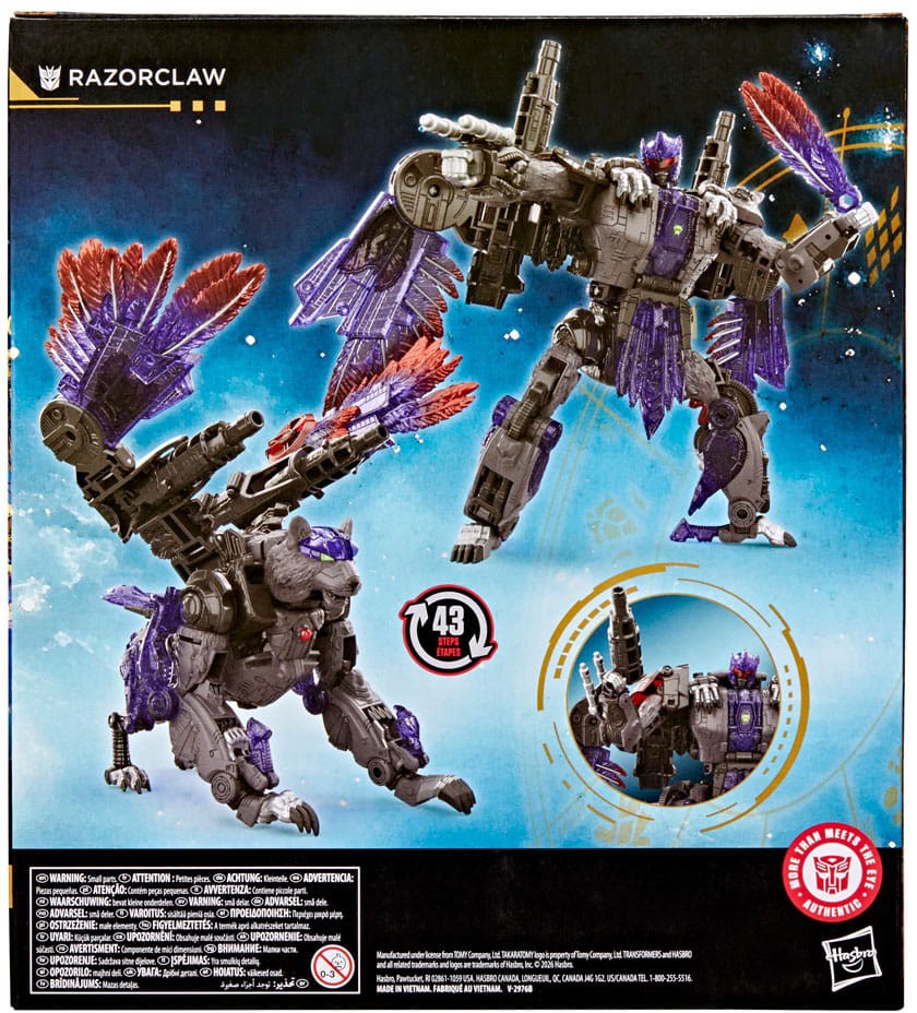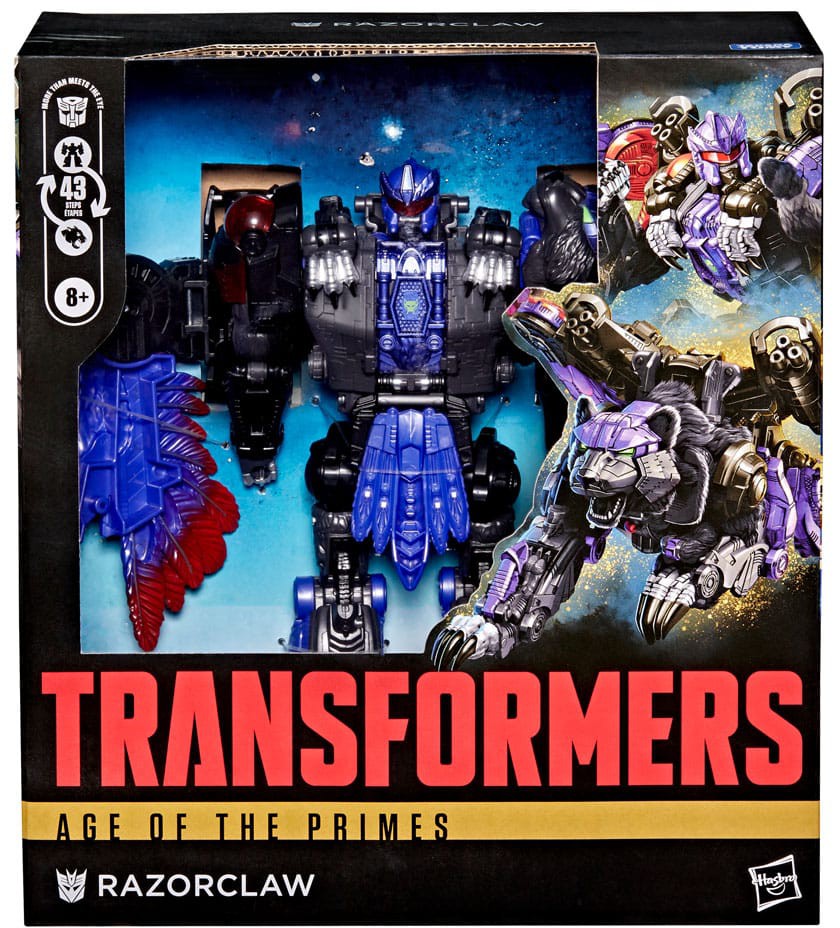 Koe Transformers-robottien eeppinen maailma Transformers Razorclaw -hahmon kanssa! Tämä Leader Class -figuuri on noin 19 cm korkea ja muuntuu robotista kotkansiipiseksi tiikeriksi 43 vaiheessa.
