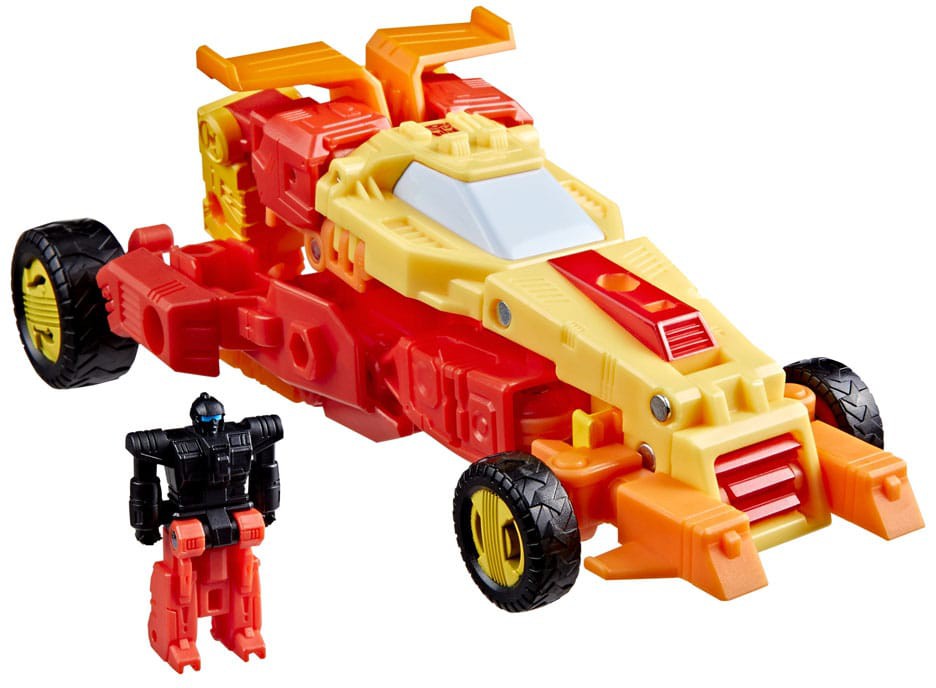 The 5.5-inch (14 cm) Deluxe Class figure converts from robot action figure to off-road dunebuggy mode in 25 steps and comes with a mini Spoilsport figure that converts into a blaster.