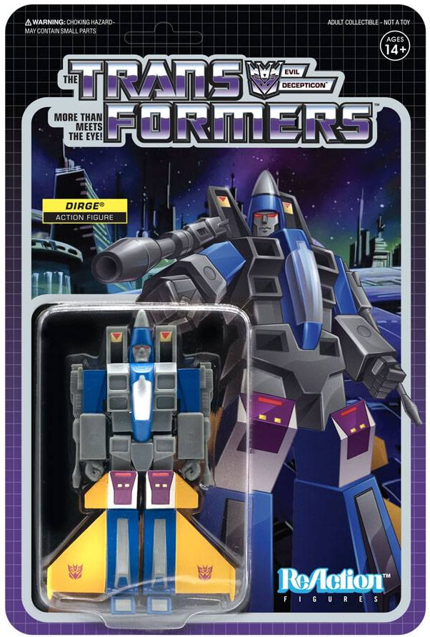 Fear is his primary weapon, but with his quiet, morose demeanor Dirge often ends up creeping out his fellow Decepticons as much as the Autobots. Just don't mistake his silence for a sign he's not plotting something frightful! Portrayed in true G1 style, this 3.75" ReAction Figure will be an invaluable addition to your Transformers lineup.