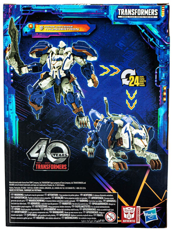 Unite your favorite characters from across the world of Transformers robots into your collection with the Transformers Legacy United Voyager Class Prime Universe Thundertron action figure! This 7-inch Prime Universe Thundertron action figure converts between robot and Cybertronian lion modes in 24 steps. Gear up for battle with the included sword accessory that attaches in both modes. The Prime Universe Thundertron figure is inspired by the character from the Transformers: Prime toy line and features articulated head, arms, and legs for awesome action poses. Celebrate the last 40 years of Transformers history with Transformers Legacy action figures. Transformers Legacy opens the portal to a whole new universe of -- More Than Meets the Eye -- bringing together every Transformers generation like you've never seen before. Collect and combine different characters to create your ideal Legacy lineup.