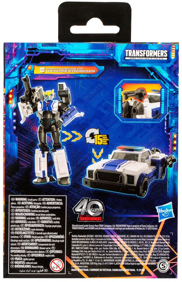 Unite your favorite characters from across the world of Transformers robots into your collection with the Transformers Legacy United Deluxe Class Robots in Disguise 2015 Universe Strongarm action figure! This 5.5-inch Robots in Disguise 2015 Universe Strongarm action figure converts between robot and police SUV modes in 15 steps. Gear up for battle with the included blaster and police siren accessories. The Robots in Disguise 2015 Universe Strongarm figure is inspired by the character from the Transformers: Robots in Disguise animated series and features articulated head, arms, and legs for awesome action poses. Celebrate the last 40 years of Transformers history with Transformers Legacy action figures. Transformers Legacy opens the portal to a whole new universe of - More Than Meets the Eye - bringing together every Transformers generation like you've never seen before. Collect and combine different characters to create your ideal Legacy lineup.