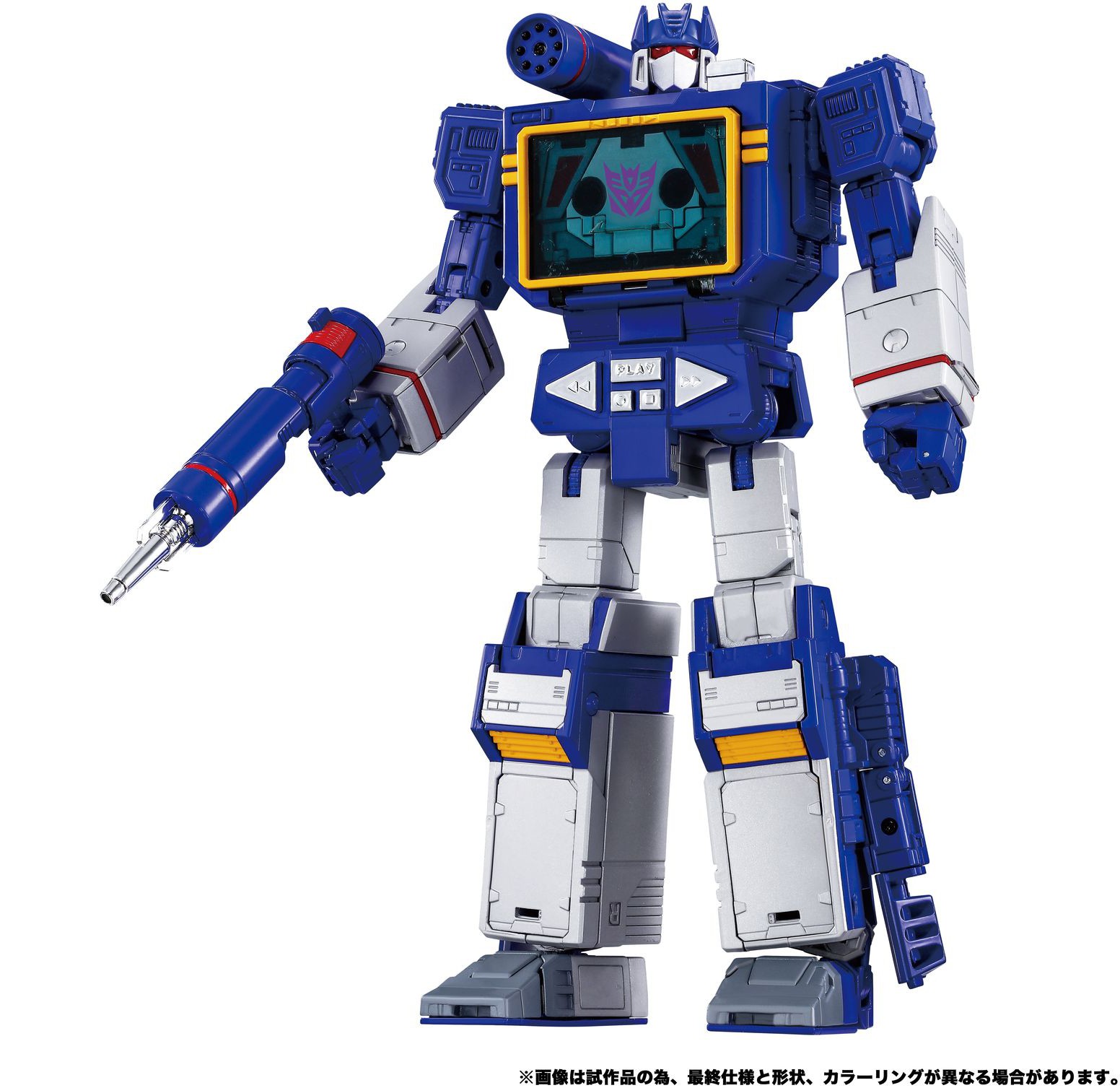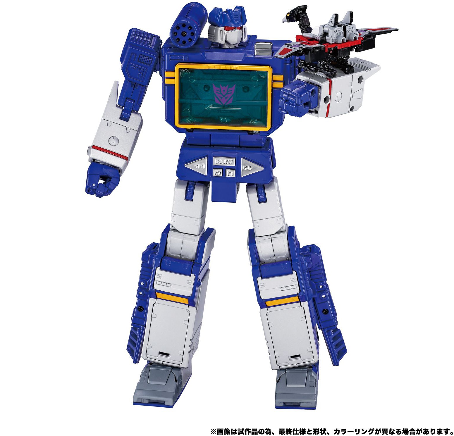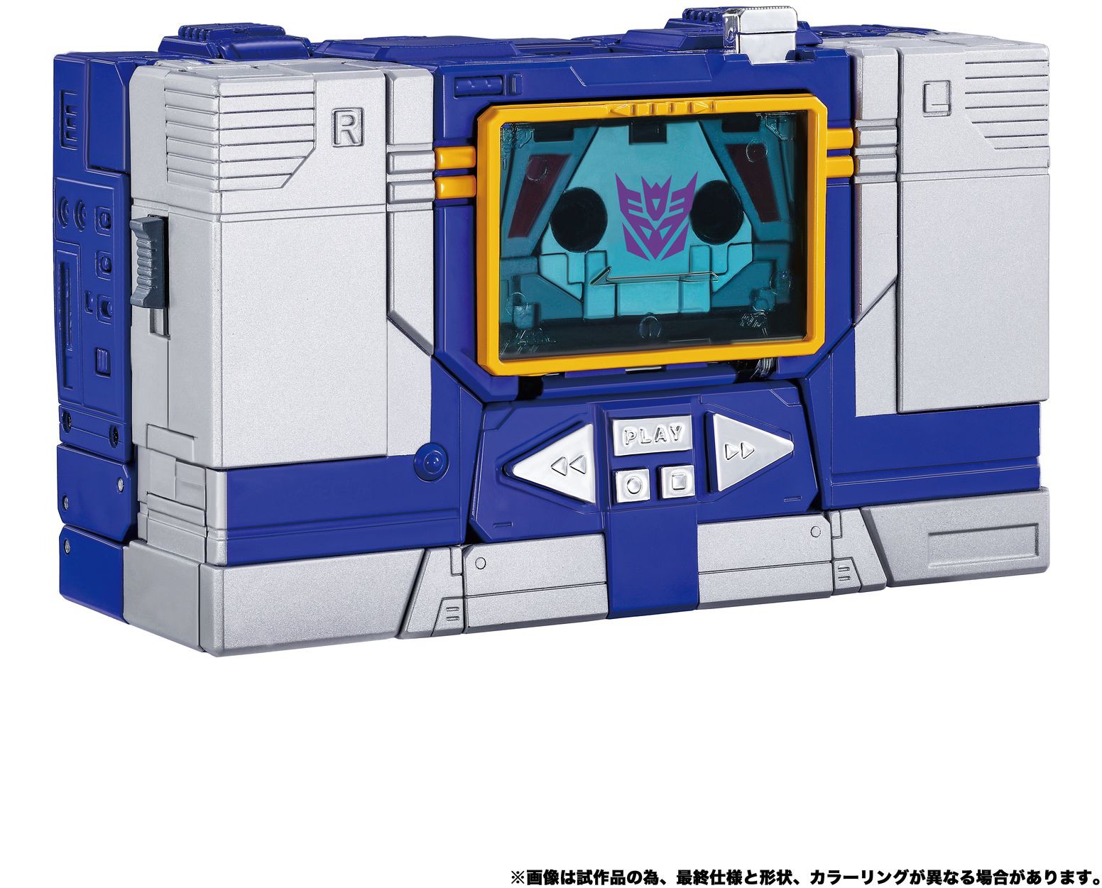 Soundwave muuttuu klassisen kasettisoittimen ja robotin välillä. Mukana tuleva Condor (Laserbeak) mahtuu Soundwaven rintaan kasettimuodossa tai voidaan kiinnittää sen olkapäälle tai käsivarteen. Tämä Masterpiece-sarjan keräilijän setti sisältää laadukkaita lisävarusteita, kuten värähtelyaseen, skannerin ja Energon-kuutioita.