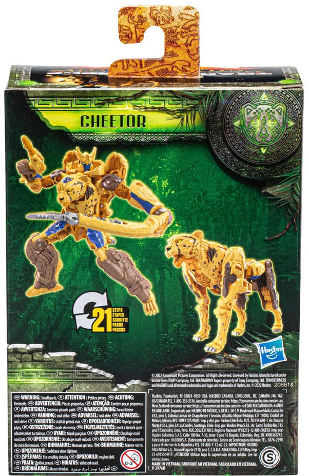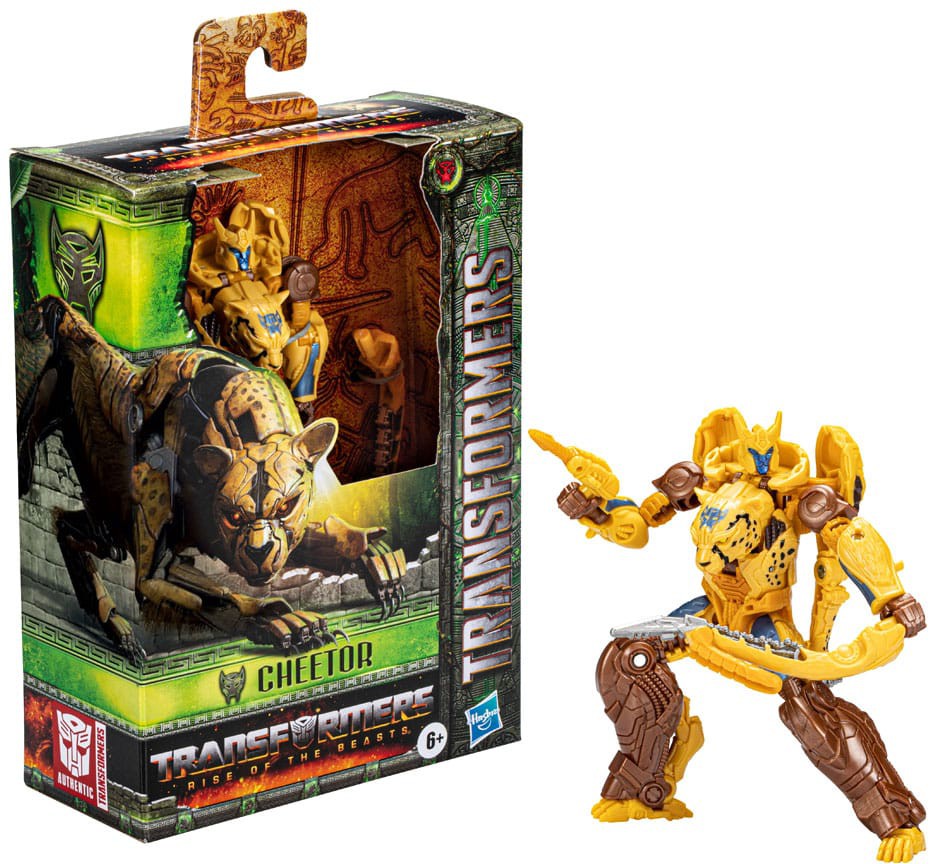 Cheetor, nopea Maximal-soturi, päihittää viholliset nopeudellaan ja ketteryydellään. Deluxe-luokan ja Voyager-luokan hahmot perustuvat uuden Transformers-elokuvan, Transformers: Rise of the Beasts, hahmoihin! Hahmot ovat nivellettyjä poseerausta varten, ja niiden mukana toimitetaan hienoja asevarusteita.