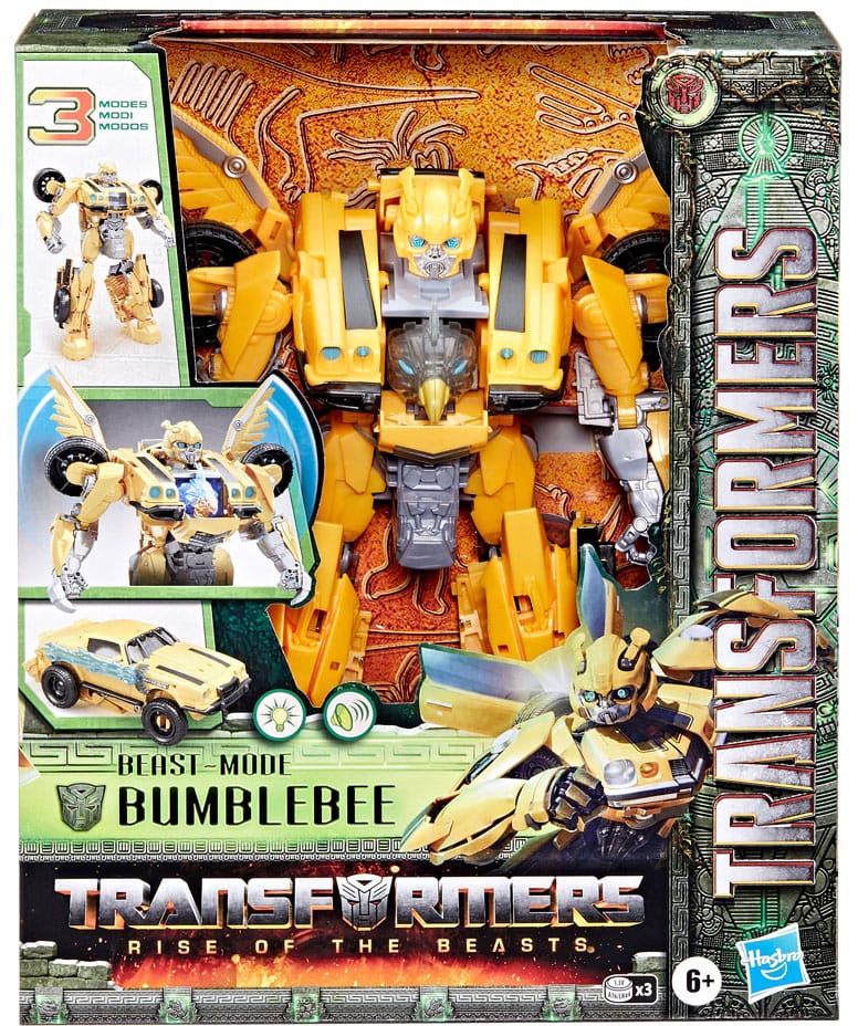 BEAST-MODE BUMBLEBEE -lelu: Tämä 25 cm pitkä Beast-Mode Bumblebee -robottilelu saa uuden Beast Alt -tilan! Toimintahahmo voi muuttua 3 tilan välillä: robotti, ajoneuvo ja peto!