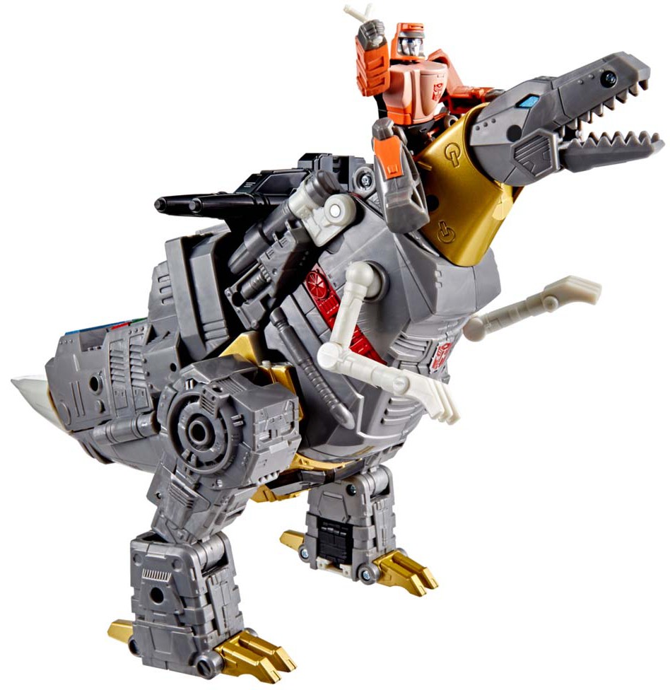 AUTOBOT WHEELIE FIGURE AND BLASTER ACCESSORY: The figure comes with a non-converting Autobot Wheelie figure that can sit on the Grimlock action figure in both modes.