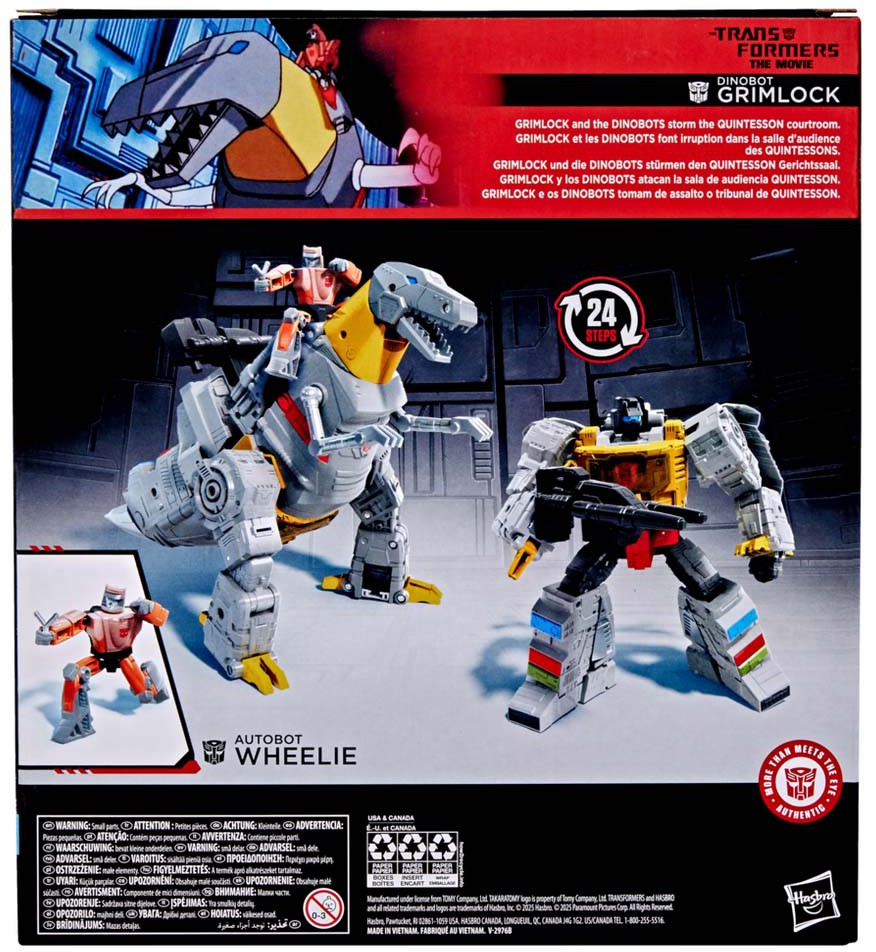 Mukana ei-muuntuva Autobot Wheelie -hahmo, joka voi istua Grimlockin päällä molemmissa muodoissa.