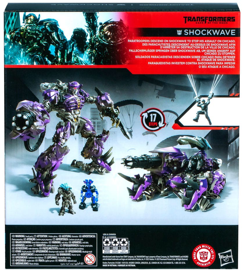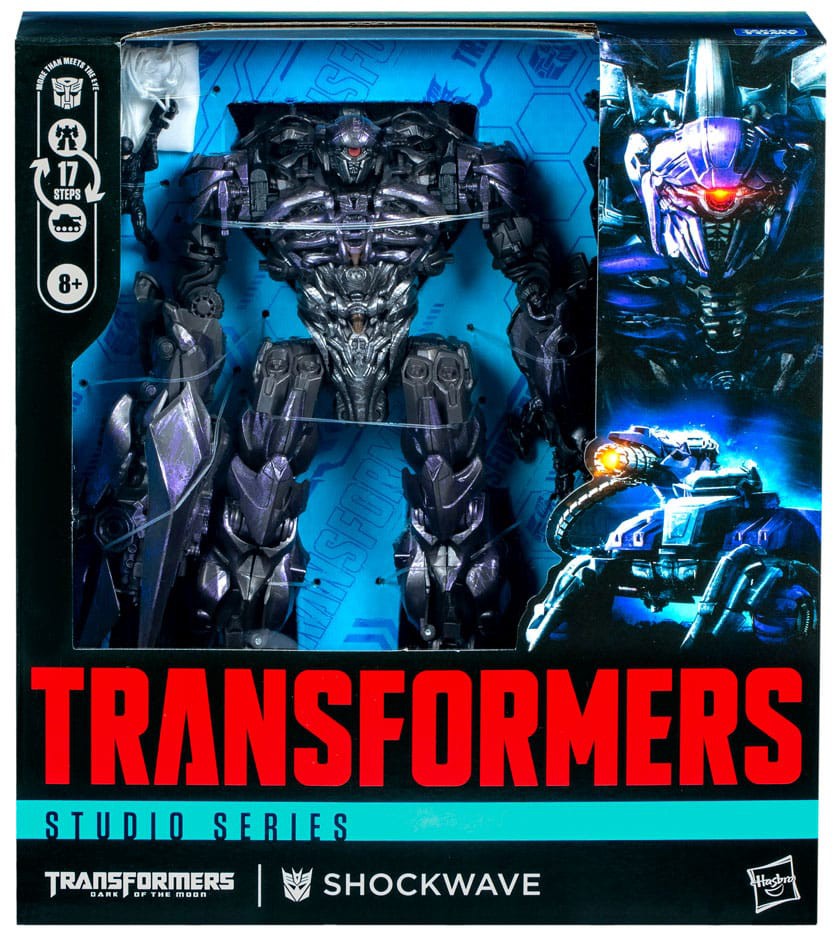 Bring the epic action of the Transformers movies from the big screen into your collection with the Transformers Studio Series Leader Class Shockwave action figure, inspired by Transformers: Dark of the Moon! Transformers Studio Series toys are collectible action figures that feature movie-inspired details and accessories. The figure converts from robot to cannon mode in 17 steps and features articulated head, arms, and legs for awesome action poses. It comes with 3 figures and 1 accessory. Look for more Transformers Studio Series collectible figures to build a movie-inspired collection.