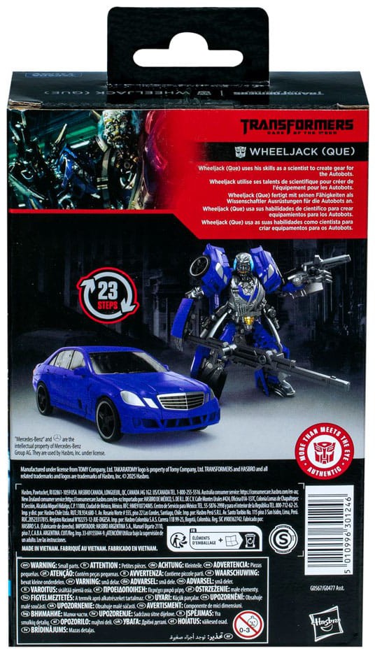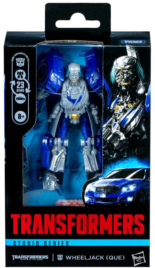 Bring the epic action of the Transformers movies from the big screen into your collection with the Transformers Studio Series 4.5-inch (11.5 cm) Deluxe Class Wheeljack (Que) action figure, inspired by Transformers: Dark of the Moon! Transformers Studio Series toys are collectible action figures that feature movie-inspired details and accessories. Convert the Studio Series Transformers action figure from robot to Mercedes Benz E550 car mode in 23 steps. The figure has articulated head, arms, and legs for action poses. Look for more Transformers Studio Series collectible figures to build a movie-inspired collection.