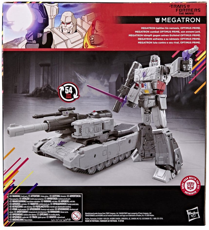 Ikonisesta Megatronin ja Optimus Primen taistelukohtauksesta inspiroituneet battle damage -yksityiskohdat sekä kiinnitettävät tarvikkeet, kuten fusion cannon, takatykki, beam saber ja blasters, tekevät tästä Megatron-hahmosta upean lisän mihin tahansa kokoelmaan.