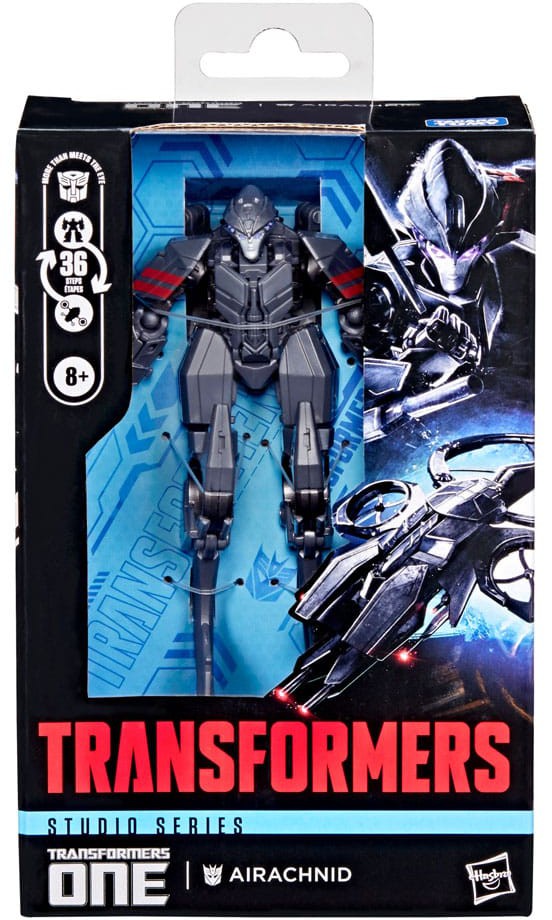 Koe Transformers One -elokuvan eeppinen toiminta Studio Series Airachnid -hahmon kanssa! Hahmo on noin 11 cm korkea (4,5 tuumaa) ja muuntautuu robotista drooniksi 36 vaiheessa. Elokuvainspiroitu muotoilu, hyvä liikkuvuus ja blaster-varusteet, jotka voidaan kiinnittää molemmissa tiloissa, tekevät tästä Transformers Airachnid -toimintahahmosta erinomaisen lisän kokoelmaan. Katso myös muut Transformers-keräilyhahmot (myydään erikseen), kuten Optimus Prime, Bumblebee, Megatron ja monet muut, ja kokoa kokoonpano, joka on – More Than Meets the Eye.