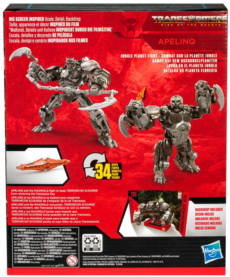 Bring the epic action of the Transformers movies from the big screen into your collection with the Transformers Studio Series Leader Class Apelinq action figure, inspired by Transformers: Rise of the Beasts! Transformers Studio Series toys are collectible action figures that feature movie-inspired details and accessories. The figure converts from robot to ape mode in 34 steps and features articulated head, arms, and legs for awesome action poses. It comes with sword, axe, arm blades, and Transwarp key accessories. Look for more Transformers Studio Series collectible figures to build a movie-inspired collection.