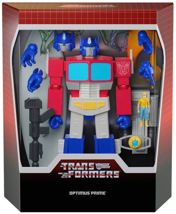 Super7 is proud to announce the first wave of Transformers ULTIMATES! Based on the Transformers you grew up watching, ULTIMATES! are made-to-order, highly-articulated figures that stand 7" tall (Optimus is 7.75" tall) and include a variety of interchangeable parts, unique accessories, and sometimes even miniature humans!