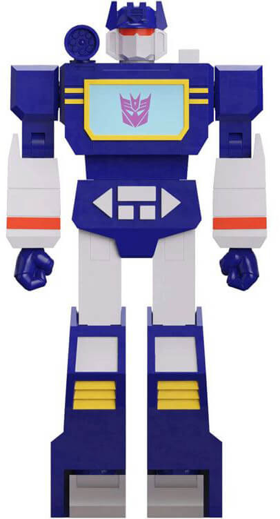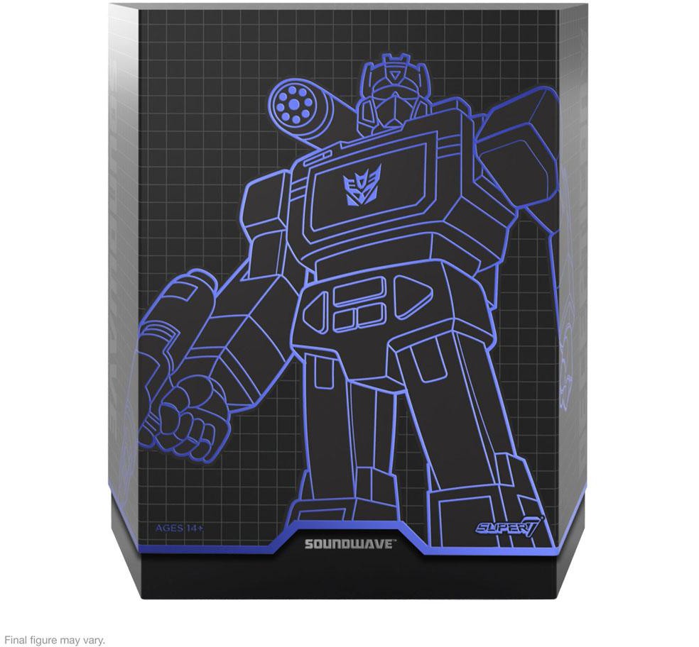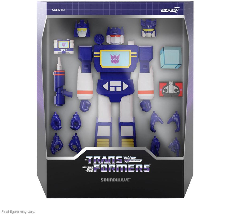 The Decepticon spymaster Soundwave rarely has much to say, but his daunting presence and loyalty to Megatron is unquestionable! This 7" scale highly articulated Transformers ULTIMATES! figure of Soundwave depicts his original G1 cassette recorder-based robot form and features cassette storage in his front chest along with backpack battery storage. Soundwave was one of the coolest and most sought-after of the original toys, and after more than 30 years, that hasn't changed a bit! So whether you want to get a companion to your original figure or if you missed out on it back in the day and have an aching desire to fill that Soundwave shaped hole in your collection, this made-to-order Transformers ULTIMATES! figure of Soundwave is what you've been waiting for!
