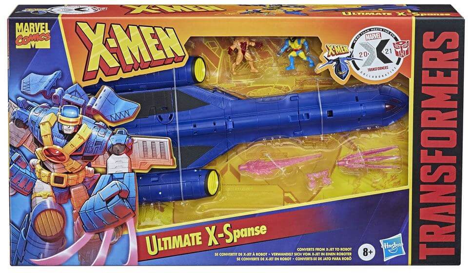 Worlds collide in this Transformers-X-Men mash-up pack! The iconic X-Jet from the X-Men animated series is now a Transformers robot, called Ultimate X-Spanse! Unlike the Sentinels, this robot is the ultimate mutant ally. This figure converts into a licensed Lockheed Martin jet in 34 steps and features deco and details inspired by the X-Men animated series. This figure comes with Wolverine and Sabretooth mini figures that can ride on figure in both modes and 3 energy blast effects: claw and slash effects to attach to figure's hands in robot mode and an aura effect to attach around Wolverine mini figure.