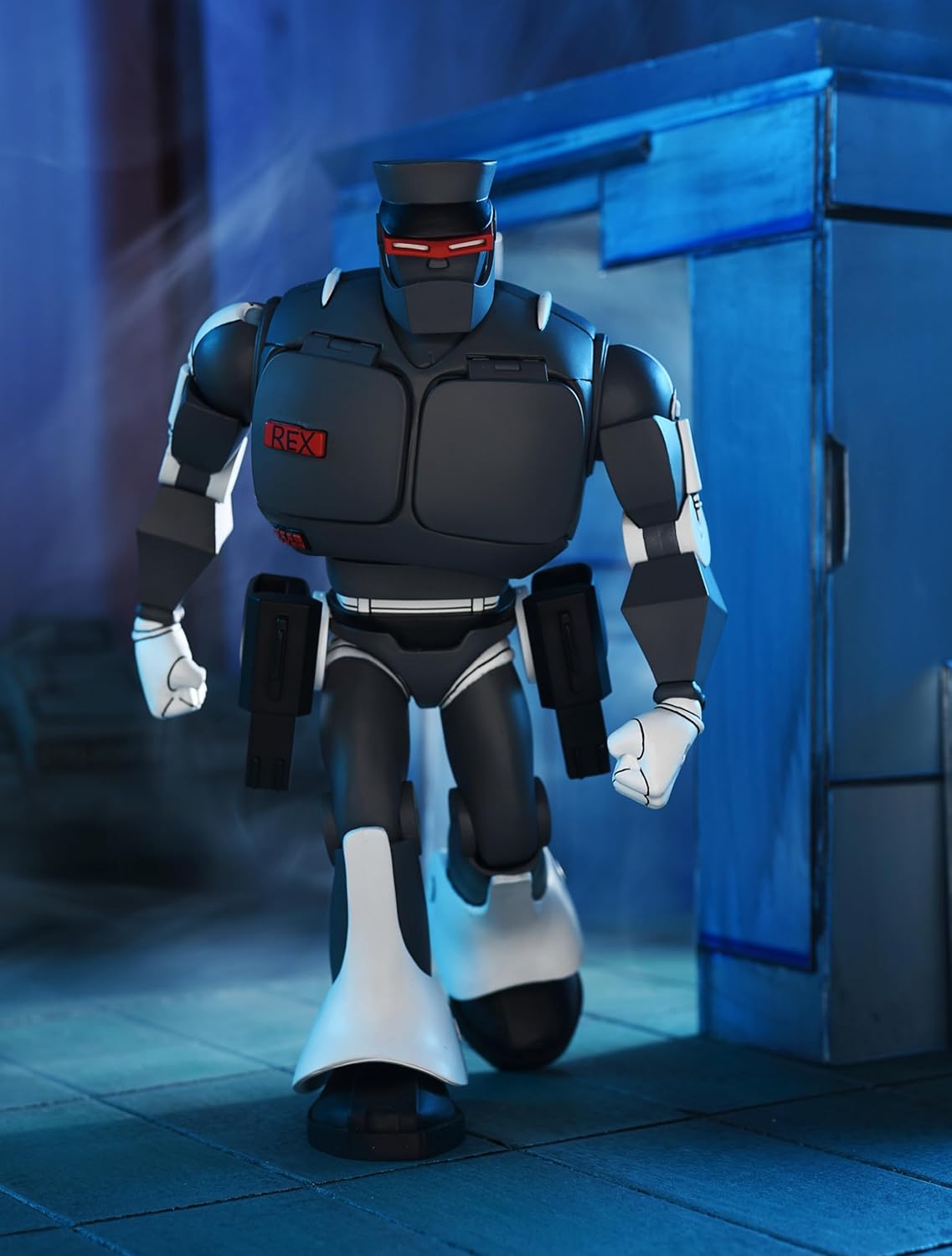 Based on the classic 1980s Teenage Mutant Ninja Turtles cartoon series! The first robot policeman known as “Robot Enforcement Experiment” now has a diabolical duplicate. Shredder’s army of Evil Rex-1 robots is here to take control of your toy shelf and terminate the Turtles once and for all! This 7-inch scale action figure is hardwired for havoc. Comes in collector-friendly VHS tribute style packaging.