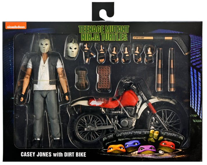 Suoraan ensimmäisestä Teenage Mutant Ninja Turtles -elokuvasta tulee uusi Casey Jones -toimintafiguuri NECA:lta. Tämä hahmo on valmis ratsastamaan TMNT-kokoelmaasi lisävarusteiden arsenaalin kanssa, mukaan lukien maastopyörä, vaihdettavat kädet, taistelun vaurioittama naamari, jääkiekkomaila, pesäpallomaila, hanskat ja paljon muuta! Toimitetaan keräilijäystävällisessä ikkunapakkauksessa.