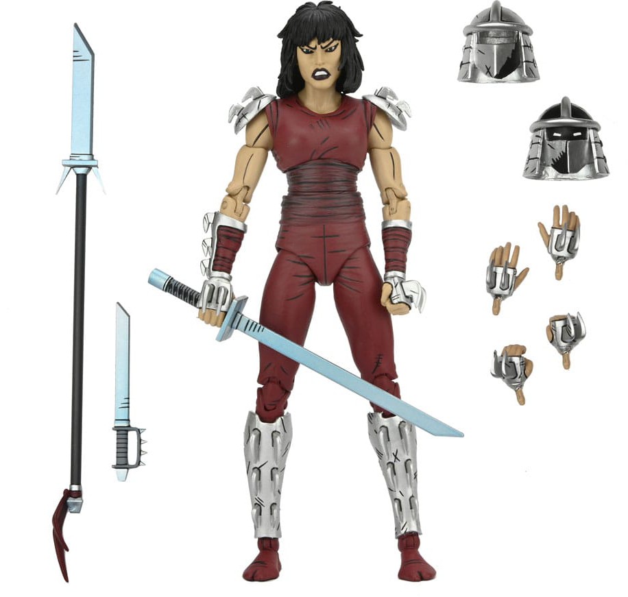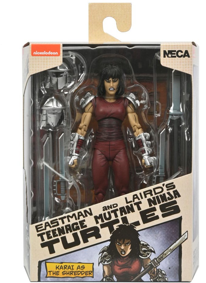 Based on the original Eastman & Laird Teenage Mutant Ninja Turtles comic books from Mirage Studios! As seen in the "City at War" storyline, Karai, the new leader of the Foot Clan, is both a fearsome foe and uneasy ally to the Turtles. This 7-inch scale NECA action figure includes masked and unmasked heads, extra hands, and deadly ninja weapons! Comes in collector-friendly packaging with original box art by Kevin Eastman.