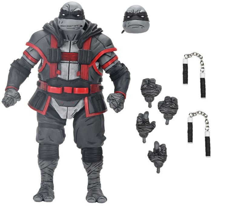 Teenage Mutant Ninja Turtles -sarjakuvasarjasta The Last Ronin - The Lost Years! Viimeisen Roninin ensimmäisen tehtävän tarina jatkuu, kun uusia salaisuuksia Kilpikonnien menneisyydestä paljastuu. Rafaelin kaaduttua jäljelle jääneet kilpikonnat ryhmittyvät uudelleen ja muodostavat Aprilin ja Caseyn kanssa Yövahdit. Michelangelo-hahmossa on tyylitelty maalaus, joka antaa autenttisen sarjakuvamaisen ilmeen. Lisävarusteisiin kuuluu kaksi päätä, ylimääräiset kädet ja nunchakut! Mukana keräilijäystävällisessä pakkauksessa, jossa on The Last Ronin -taiteilija Ben Bishopin alkuperäiset kuvitukset.