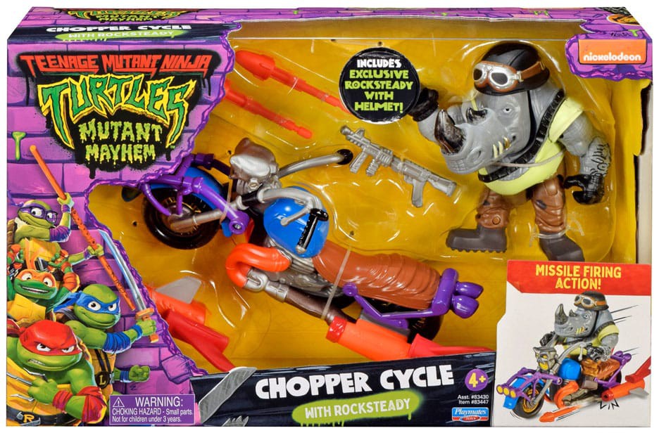 Esitä kysymyksesi tuotteesta "Turtles - Rocksteady with Chopper Cycle".