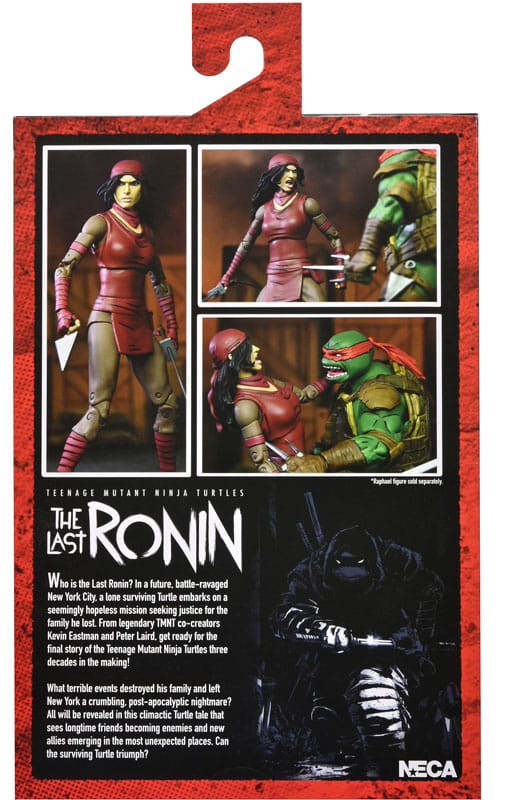 Teenage Mutant Ninja Turtles -sarjakuvasarjasta The Last Ronin! Tulevaisuuden NYC:ssä, joka on täysin erilainen kuin nykyään, yksinäinen eloonjäänyt kilpikonna lähtee toivottomalta tuntuvalle tehtävälle tuoda oikeutta perheelleen ja ystävilleen. Jalkaklaanin johtaja Karai on sekä kauhea vihollinen että epämiellyttävä liittolainen kilpikonnaperheelle. Rikkinäisen aselevon jälkeen Karai ryhtyy taisteluun, joka voi muuttaa Kilpikonnien kohtalon ikuisesti. Tässä 7-tuumaisessa hahmossa on yli 20 nivelpistettä, ja se sisältää kaksi vaihdettavaa päätä, vaihdettavat kädet, miekan ja tupen sekä heittoveitsen, aivan kuten The Last Roninissa. Tulee keräilijäystävällisessä ikkunalaatikossa, jossa on avattava läppä, jossa on The Last Ronin -taiteilija Ben Bishopin uusi erikoiskuvitus.