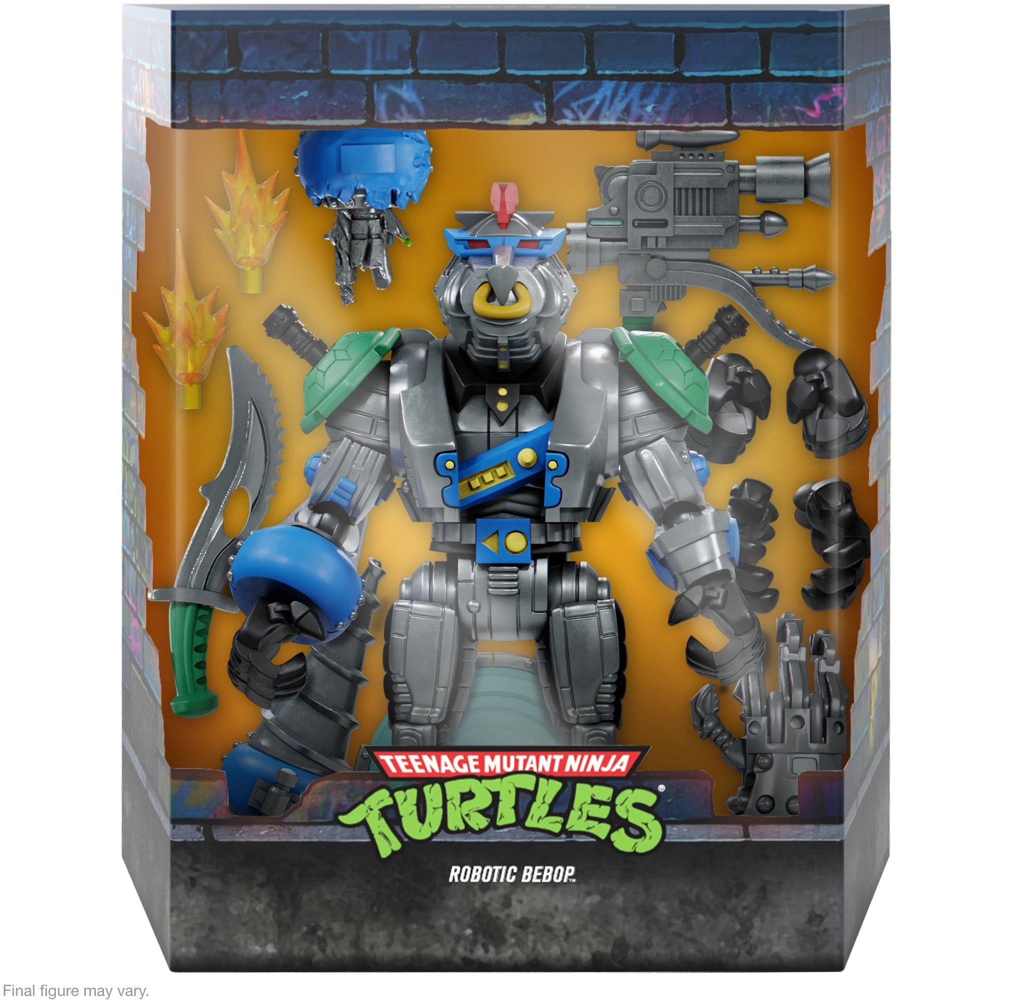 When Shredder makes a cybernetic clone of his henchman Bebop, the now smarter and stronger Robotic Bebop means the Teenage Mutant Ninja Turtles have a new mechanical menace to deal with! This 8" tall highly articulated ULTIMATES! figure of Robotic Bebop features premium detail and comes with interchangeable hands and a variety of other iconic accessories, including the Laser Luger/Flame Thrower Combo and Mechanical Mutant Claw. Robotic Bebop is a serious upgrade over Bebop the mutant warthog and the Teenage Mutant Ninja Turtles ULTIMATES! Robotic Bebop is a surefire way to enhance your entire TMNT collection!