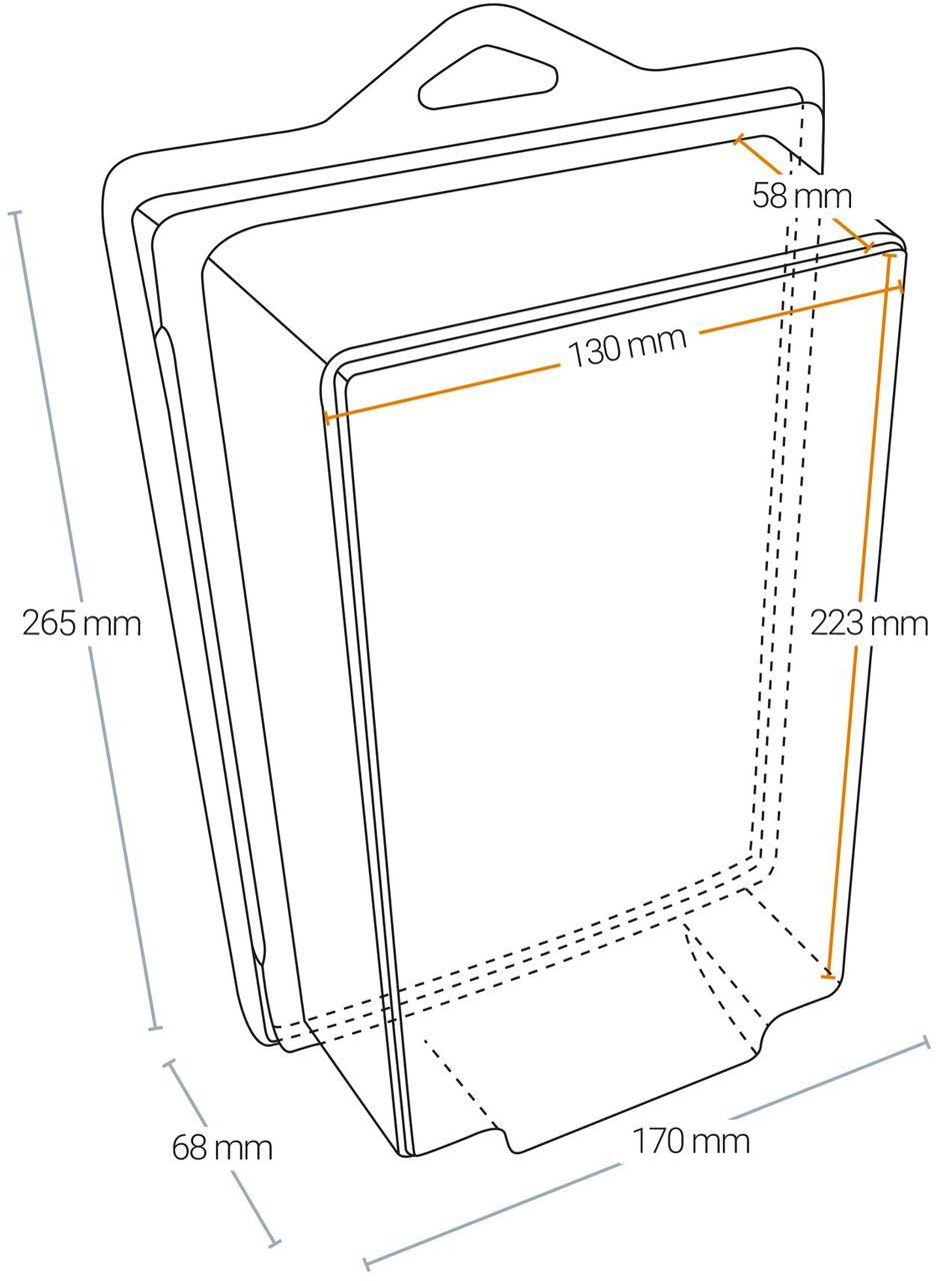 - outer dimensions: 170 mm W x 265 mm H x 68 mm D