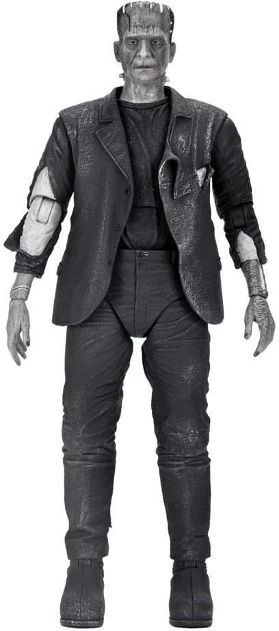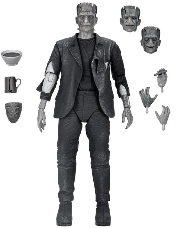 Frankenstein's Monster lives! Recreate iconic scenes from the 1935 sequel The Bride of Frankenstein with this Ultimate action figure from NECA! Appearing as if he lumbered off the silver screen itself, this figure features black-and-white deco and sculpts reflecting Boris Karloff's second appearance as The Monster. Accessories include interchangeable heads and hands, a loaf of bread, mug, and bowl of soup. Looming over 8 inches tall with 28 points of articulation, this figure is ready to join your black-and-white Universal Monsters collection! Comes in display-friendly window box packaging with opening front flap.