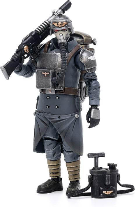 Joy Toy brings the Death Korps of Krieg Veteran Squad from Warhammer 40k to life with this new series of 1/18 scale figures. Each figure includes interchangeable hands and weapon accessories and stands between 4" and 6" tall.