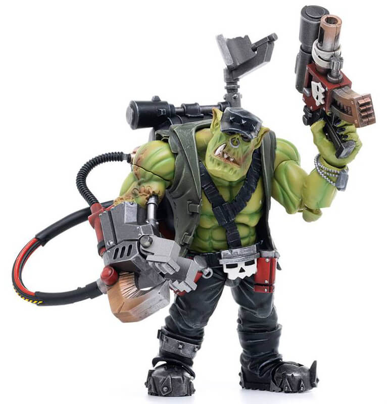 No right-thinking Ork trusts Kommandos. They sneak up on the enemy rather than charging in headlong, and have an unhealthy fascination with very big knives and their application to people's backs, throats and guts. That said, having a band of Kommandos ambush the enemy mid-battle definitely has its uses! Joy Toy brings the Ork Kommandos from Warhammer 40k to life with this new series of 1/18 scale figures. Each figure includes interchangable hands and weapon accessories and stands about 5" tall.