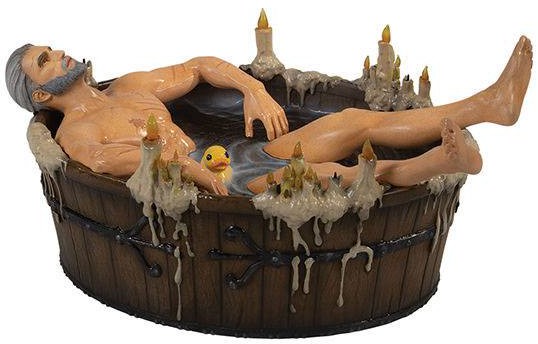 Dark Horse is proud to bring you this marvelously detailed, hand-painted polyresin statuette featuring Geralt of Rivia relaxing and healing from his perilous journeys, in a candlelit bath, complete with his rubber ducky!