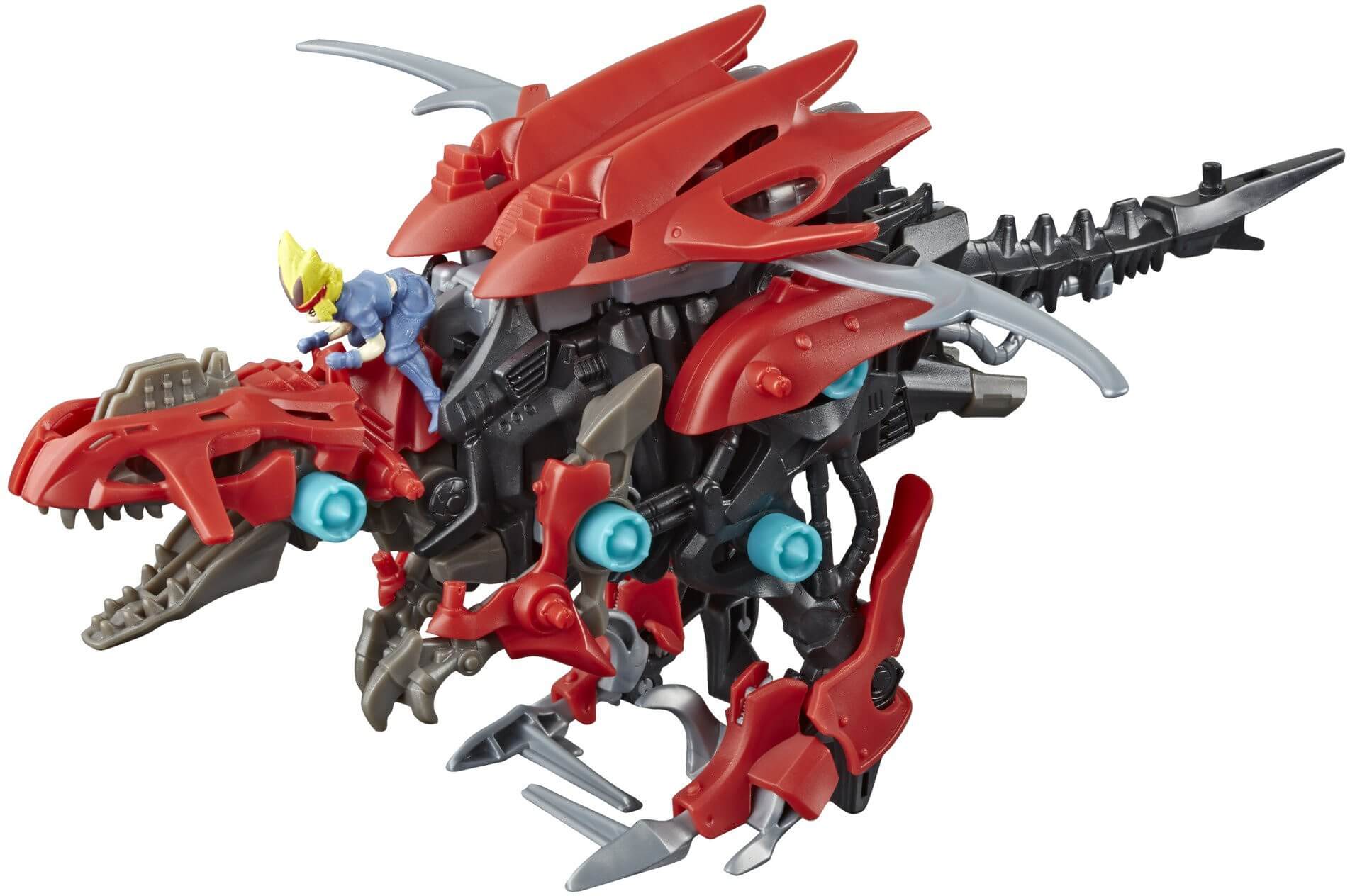 Zoids figures are building toys that battle. This pack comes with 45 pieces to build the Deinonychus raptor-type Ruin figure. Once built, switch on to activate motion. The figure’s motion automatically unleashes a motorized battle move called a Dark Blast! As the Ruin figure moves, his Dark Claw Dark Blast move will activate!