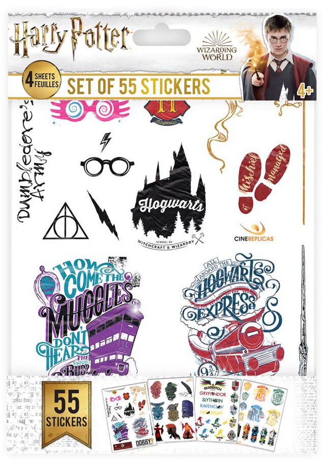 Officially licensed Harry Potter Gadget Decals. Set of 4 pages (55 stickers in total).