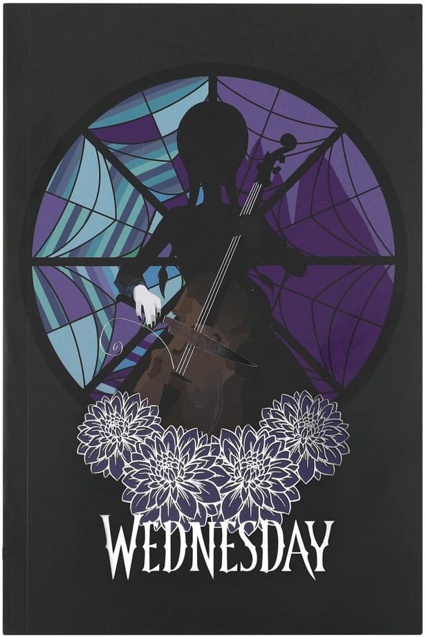 Muistikirjan etupuolella on kiehtova kuva Wednesdaystä, joka soittaa selloa veitsellä ikonisen lasimaalauksen edessä. Muistikirjan pehmeän kannen ansiosta sitä on helppo kuljettaa mukanasi kaikkialle, ja laadukas paperi takaa, että kirjoittaminen, piirtäminen tai muistiinpanojen tekeminen näyttää ja tuntuu hyvältä.