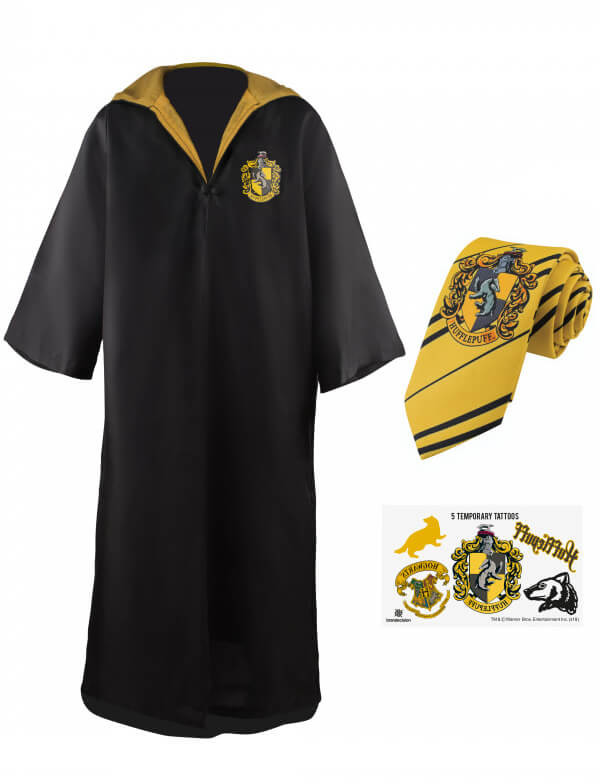 Esitä kysymyksesi tuotteesta "Harry Potter - Robe, Necktie & Tattoo Set Hufflepuff".