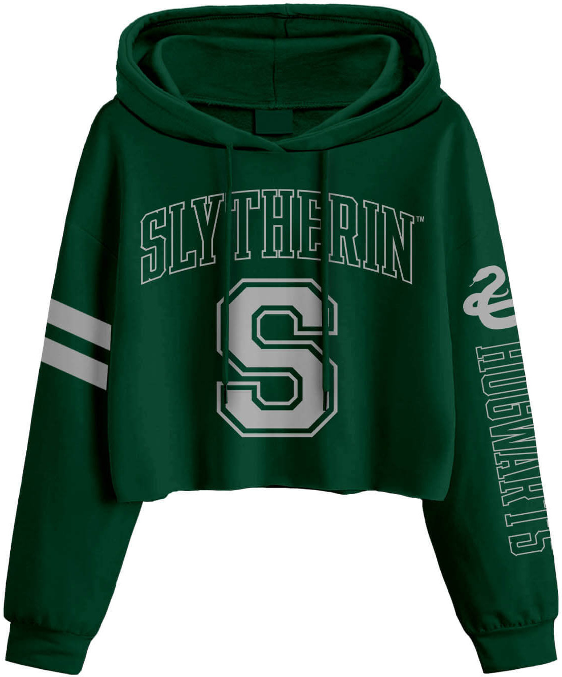 Womens college style cropped Slytherin hoodie from Heroes Inc.